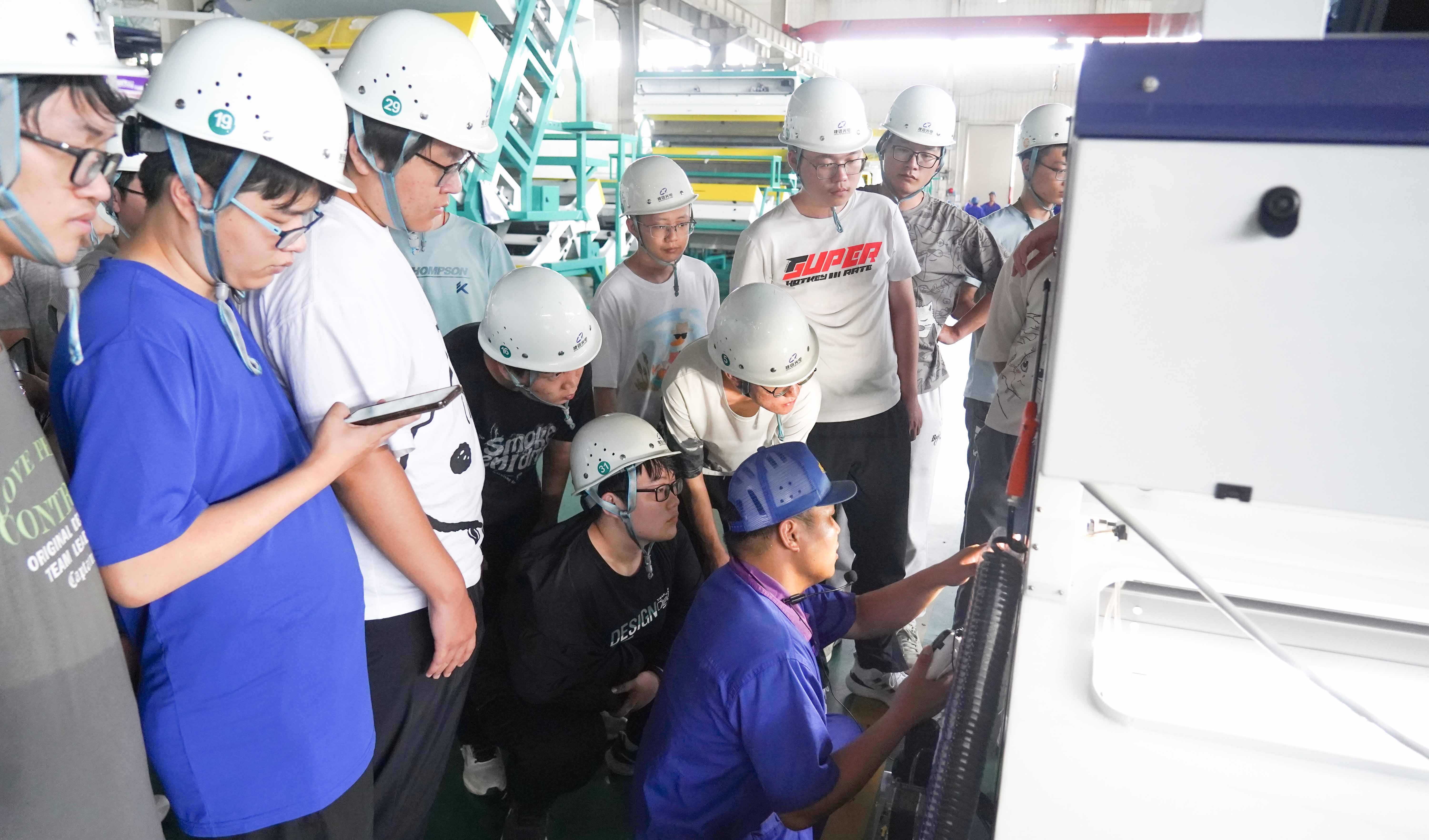 考察学习期间,来自BBIN电子研发、车间、应用工程等多个部门资深工程师,通过理论讲解、车间参观、分选演示等,为大家传授详实的質选机制造工艺和質选技术理论,并了解BBIN电子質选工艺在BBIN电子分选领域的应用。