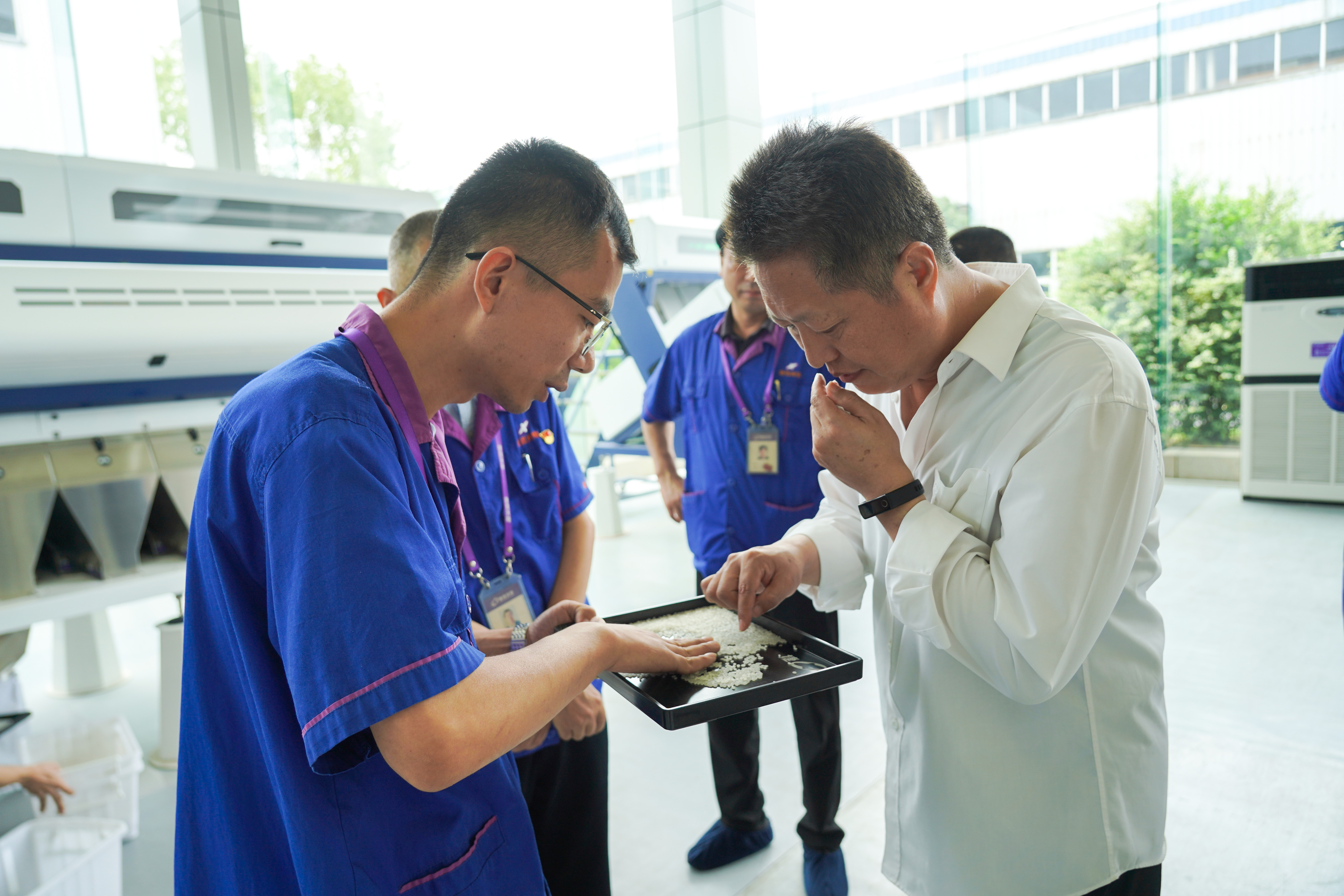考察团一行先后参观了公司数字化生产车间和质选体验中心,高度评价了BBIN电子为解决粮食加工行业难题所做出的努力,并对BBIN电子积极推进节粮减损,提高新质生产力表示赞赏。