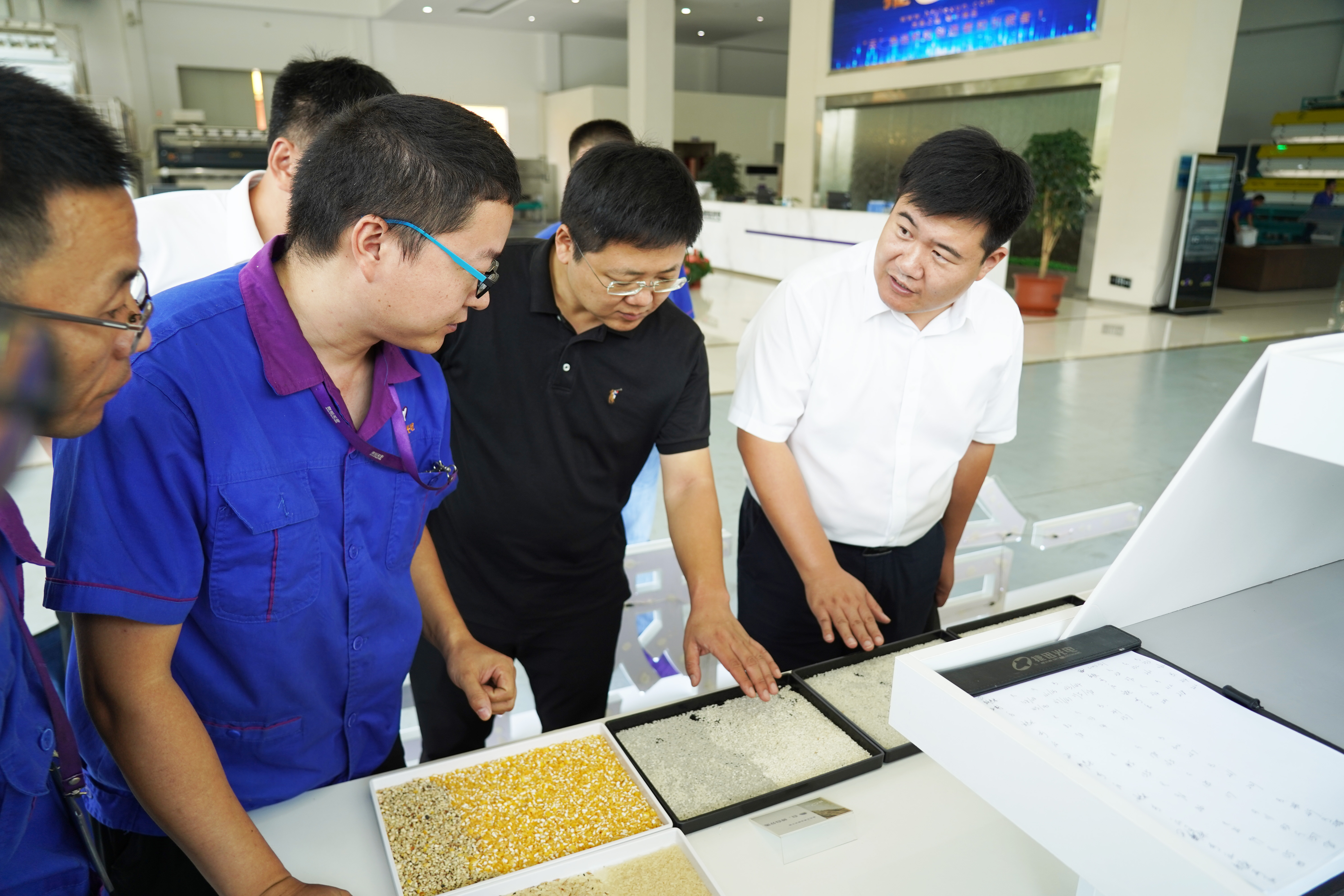 在質选体验中心,高强副主任一行近距离观摩了全场景解决方案的工艺流程和分选优势,高度评价了BBIN电子质选智能分选装备,并对公司长期守护BBIN电子安全工作所做的大量努力表示赞赏。