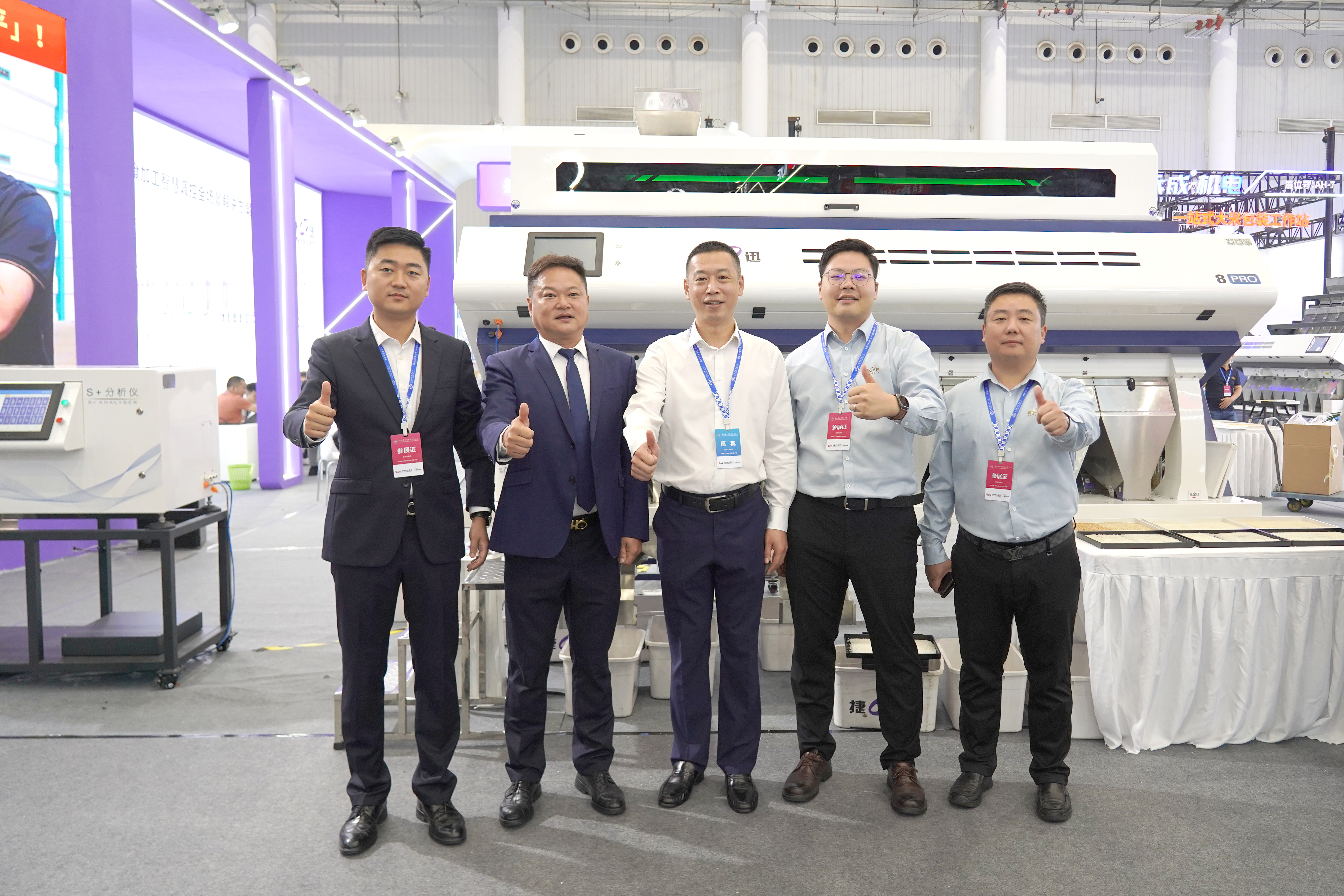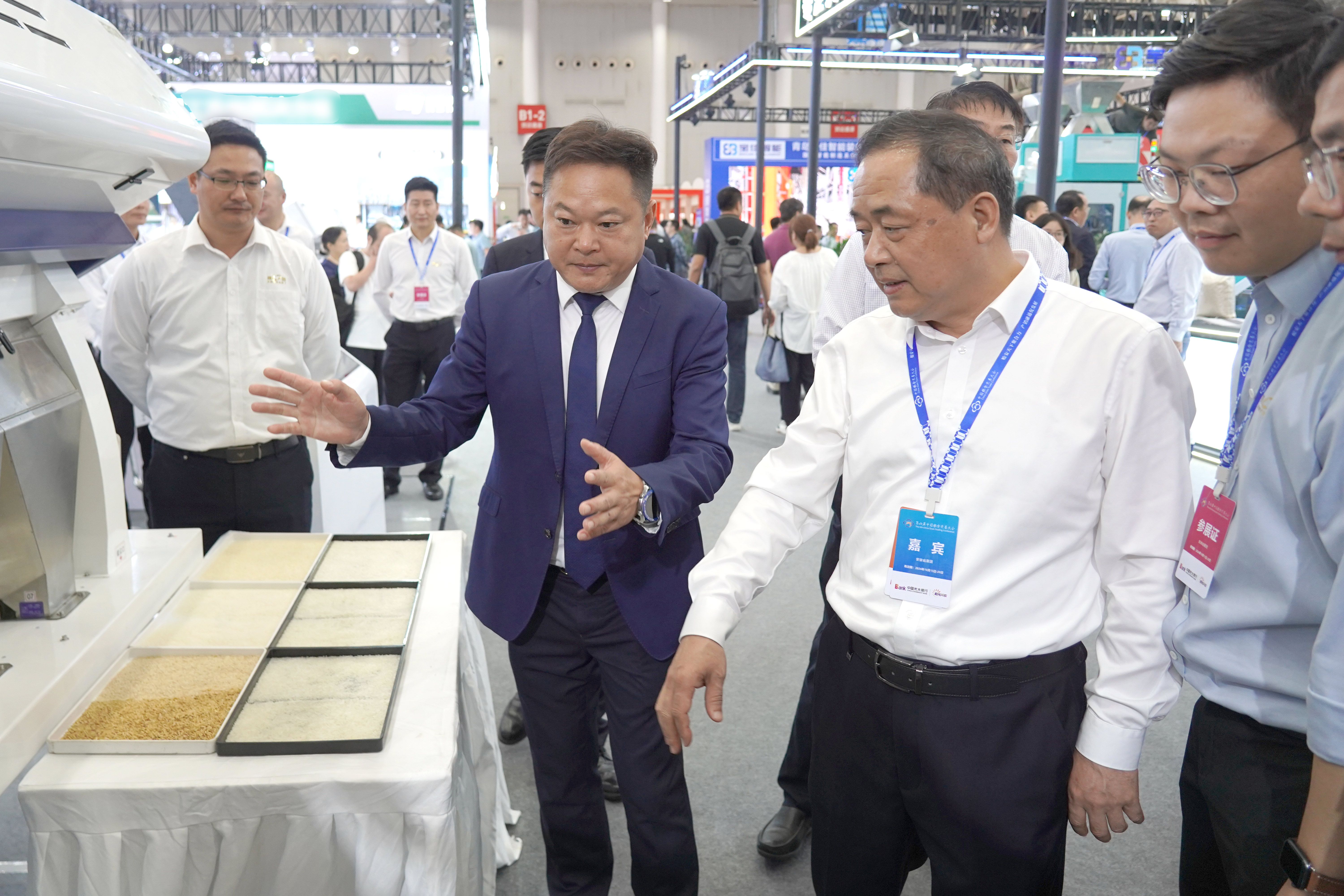 展会现场,安徽省发展改革委党组成员、省粮食和物资储备局局长万瑞健等各省粮食局领导,以及黑龙江粮协等各省粮食行业协会领导先后来到BBIN电子展台,详细了解BBIN电子云控粮食智慧调控解决方案先进技术成果,积极肯定了BBIN电子云控技术对粮食加工智能化发展的推动作用,为粮食安全提供了有力保障!