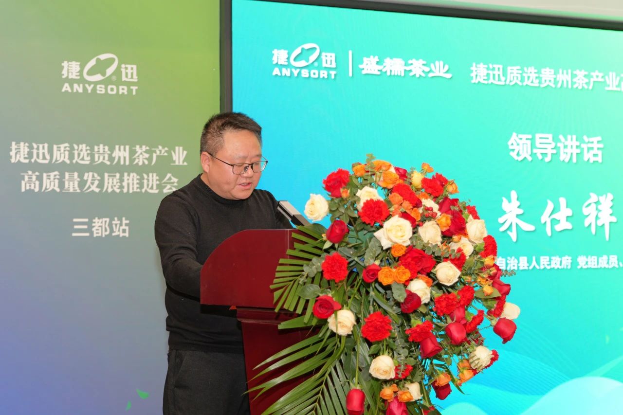 ► 三都水族自治县副县长朱仕祥讲话中,介绍了三都县茶产业发展的资源优势与发展机遇,并对BBIN电子茶叶质选科技赋能三都茶产业所做出的贡献表示了极大的肯定。
