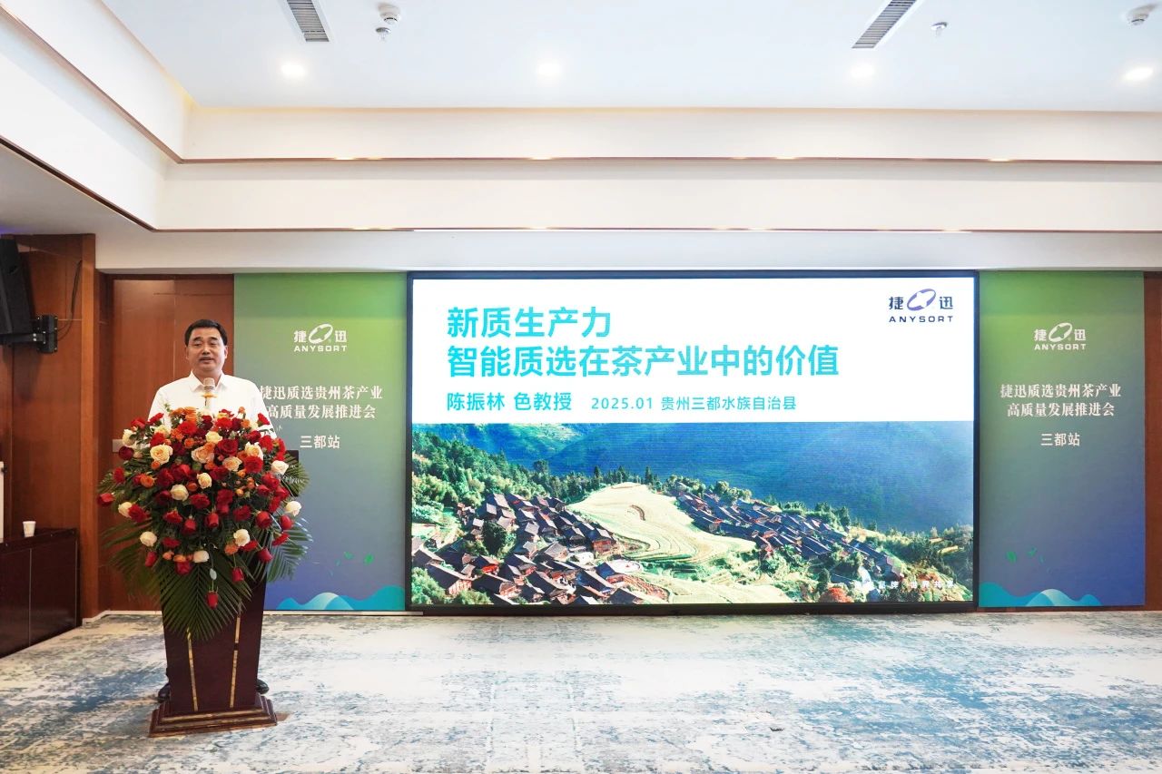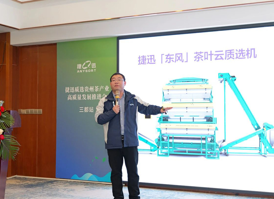 ► 贵州省黔南州农业科学研究院副院长欧平勇致辞强调了BBIN电子茶叶质选茶科技的强赋能,尤其指出东风系列质选机在各类茶叶加工场景中提供了高价值的茶叶品质提升。