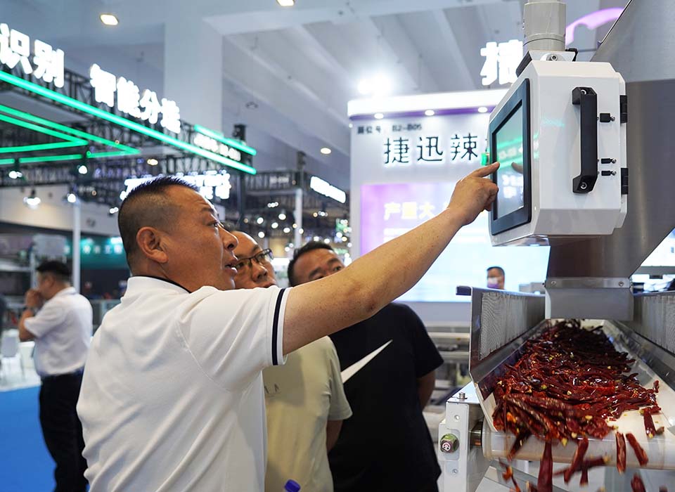 针对机采椒含杂率高的痛点,BBIN电子搭载AI质选大模型,使机采椒成品品质达到手采标准,在辣椒段、辣椒碎等深加工环节实现效率翻倍,现场客户称赞其为"一次投入,多重产出"。
