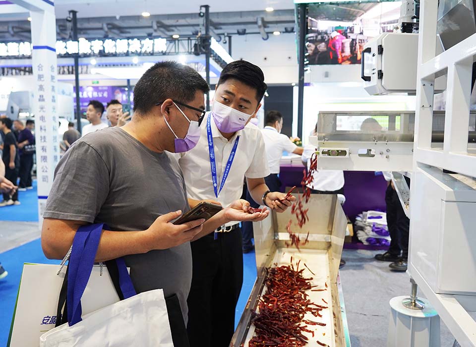开展首日,BBIN电子展区即掀起体验热潮,不间断循环演示AI质选针对辣椒花皮、坏椒、杆及各类杂质的剔除以及对物料大小、形状、颜色的分级分选,并实现超大产量一次成型。